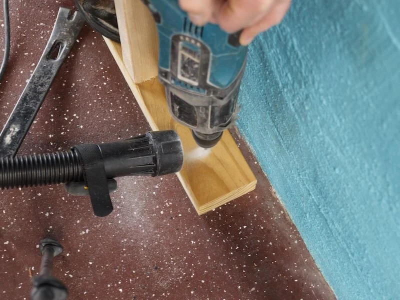 We got in a good rhythm here, with Justin manning the SDS drill and me on vacuum duty, then I would drive in the screw once the hole was drilled. I would definitely recommend some sort of dust control here, because drilling into concrete creates a ton of fine dust that you really don’t want to be breathing.