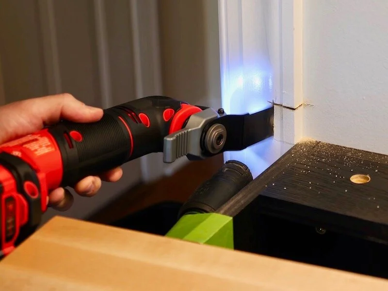Oscillating tool to remove trim for countertop on the home bar I’m building. Woodworking DIY home improvement.