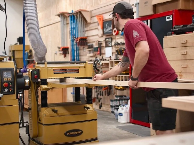 Flattening counter top sections with my new 12” Powermatic jointer. DIY home improvement. Crafted workshop.