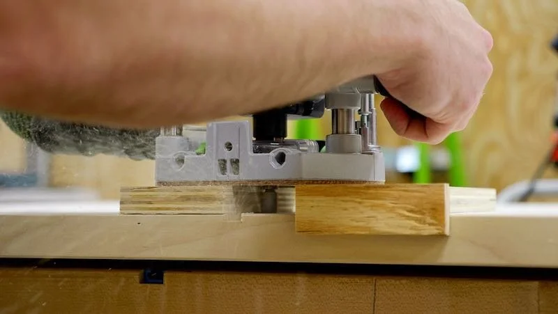 I set my depth stop off camera, so I lowered the router to the depth stop then routed out the slot. You just want to make sure you’re plunging deep enough so that the bearing on the bit is riding on your jig, otherwise you’ll be routing freehand. You also want to make sure to run your router clockwise along the jig.