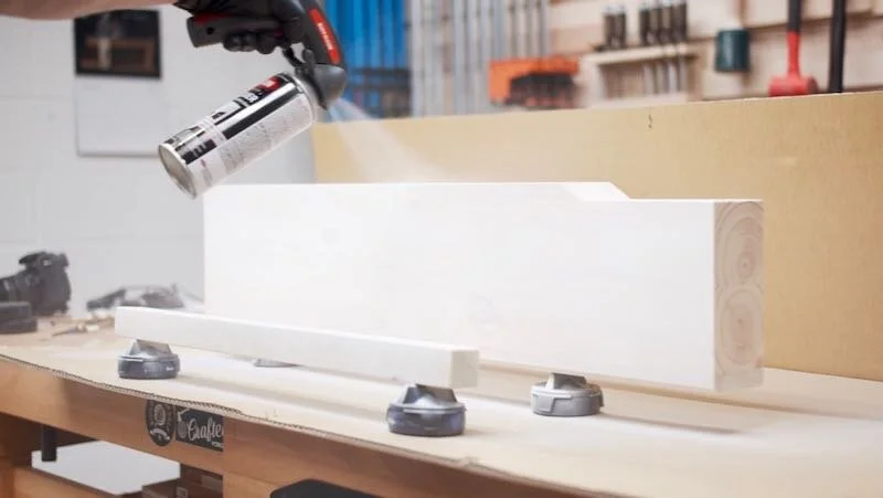 For the finish on that mounting piece and the mounting block, I went with a white spray lacquer, as I wanted these pieces to blend in with the wall and trim. I’m really liking this tinted spray lacquer, as it dries incredibly fast and leaves a really nice surface finish. That said, the fumes are horrendous, so make sure to spray it in a well ventilated area with a respirator.