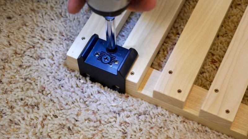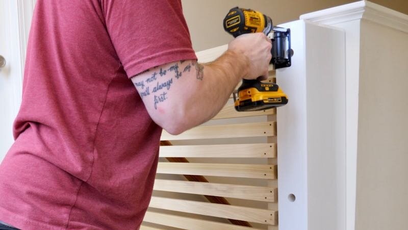 I worked my way from the outside in, which ended up working out well since the gap for the centermost slat was ever so slightly bigger than the rest of the slats, I think due to the fact that these boards were slightly narrower than I had accounted for. By working my way towards the center, it allowed me to center that last slat in the remaining space, making the slight difference disappear visually.