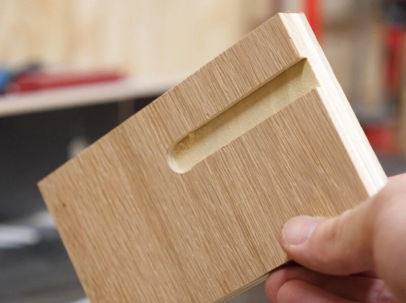 The last thing to do on the drawers and doors was to cut a small recess on the top edges of the pieces to allow this edge pull to sit flush with the top of the pieces.