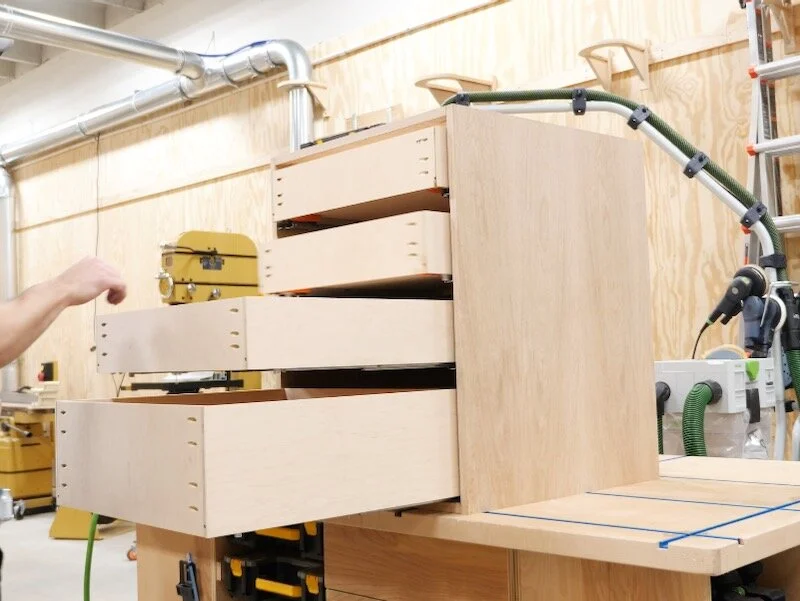 With all of the drawer fronts and doors edge banded, I could move on to getting them mounted.