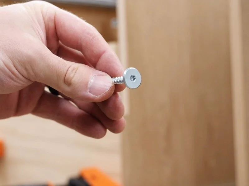 Rather than using nails to attach the shelf standards, I decided to use these tiny brass screws. This allowed me to easily add and remove the shelf standards, whereas this wouldn’t have been possible with nails. I made sure to pre-drill the holes and switched to the fragile screw setting on my impact driver to drive the screws.