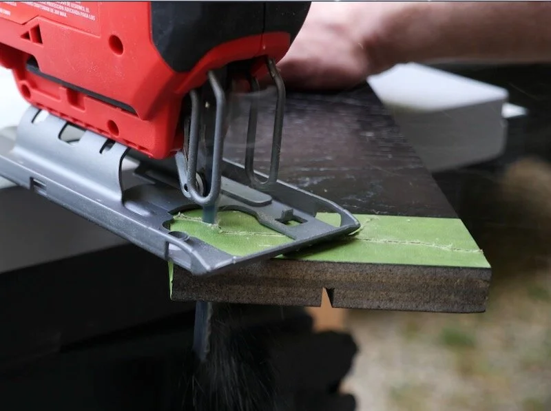 I first added painter’s tape along where I would be cutting, to reduce tearout, and added another strip to keep the finish from getting scratched up.