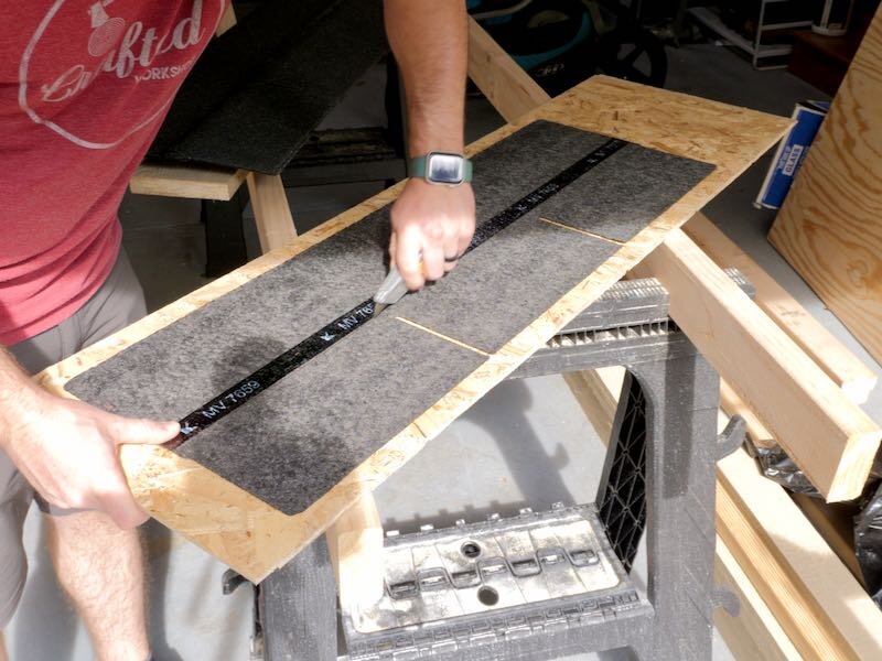The last board at the very bottom of the ramp needed to be ripped to width, and I did this with my circular saw, also adding a slight bevel to make it easier for items to roll onto the ramp.