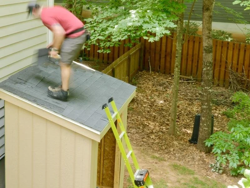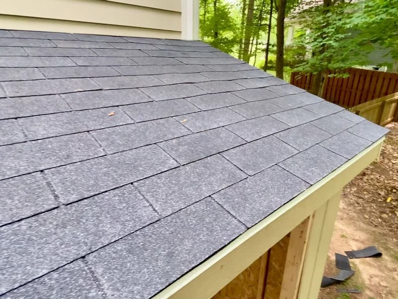 With that, the roof was done and the shed was dried in, and I’m really happy with the way it turned out. Roofing is definitely a pain but it pays to install it well, especially when you can see the roof easily, like you can see this roof from our deck, which overlooks this shed.