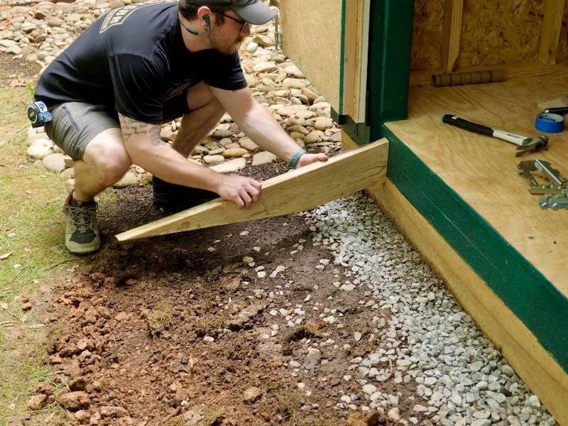 First, I measured out where the ramp would land in front of the shed and dug out the area so I could add gravel.