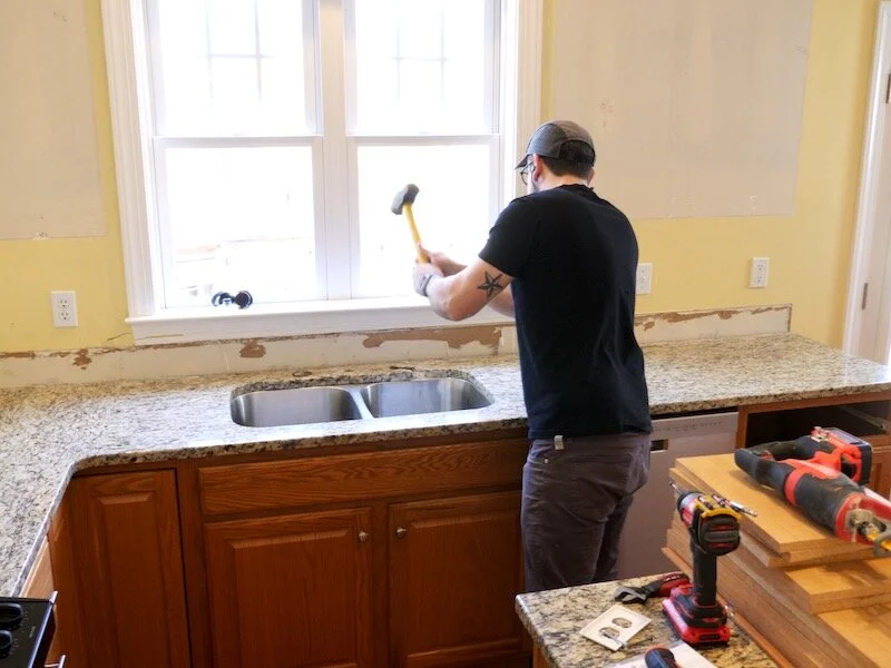 With the faucet out of the way, we could work on removing the countertop itself, which was actually way easier than I expected.