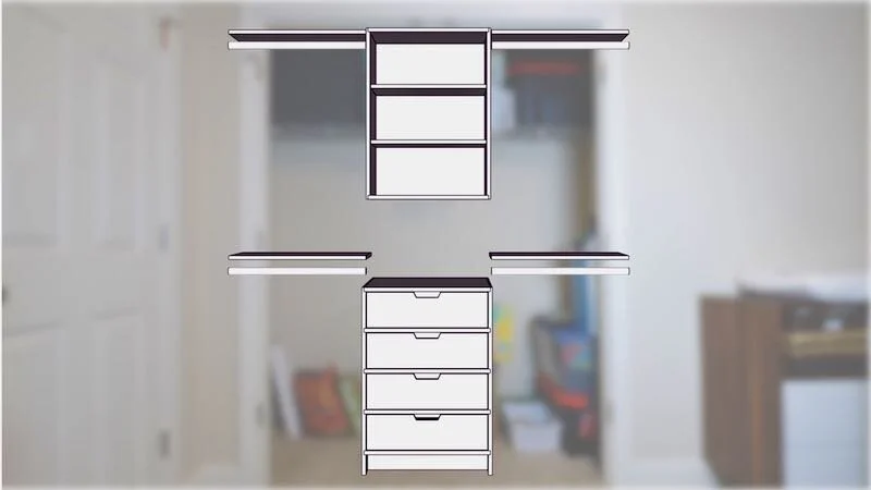 Learn how to makeover your closet with custom built-in cabinets, closet shelving, and tons of storage! Complete with closet rod and tons of drawers, this will take your closet from mess to masterpiece.