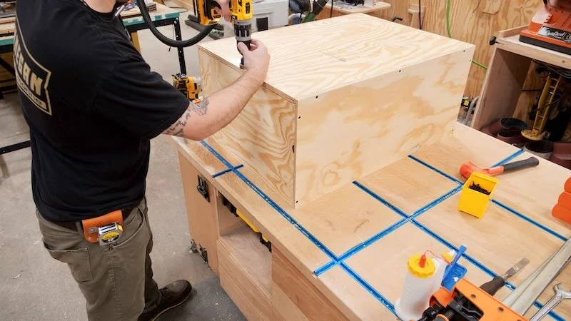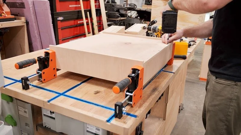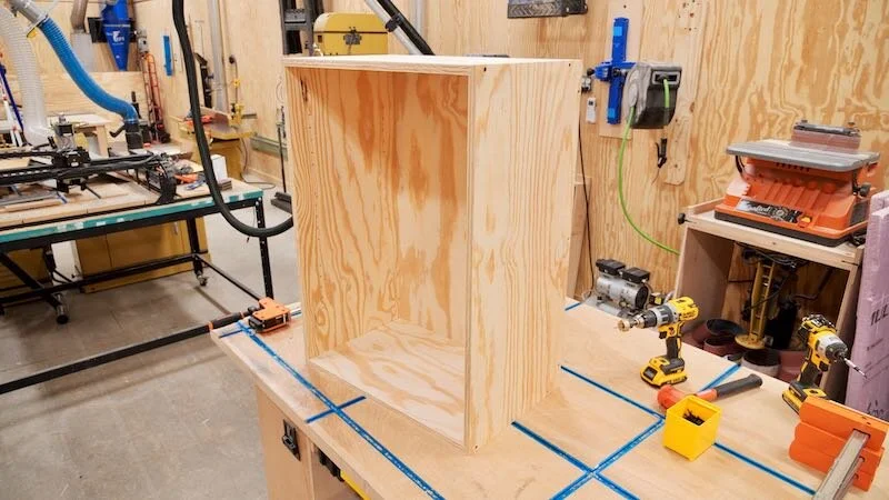 I added the top and bottom panels next, which are housed in a rabbet, and then I screwed the whole thing together through the pre-drilled assembly holes. I did countersink the holes slightly so they’d be easier to fill, but otherwise this was almost as easy as assembling IKEA furniture.