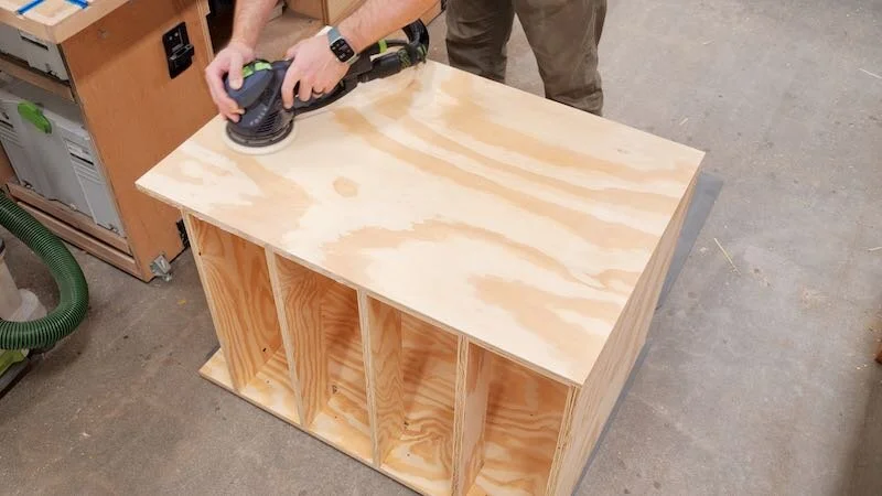 Next, I took the dry assembly apart and sanded all of the inside faces of these upper cabinets up to 120 grit, since it was a lot easier to sand these pieces prior to assembly.