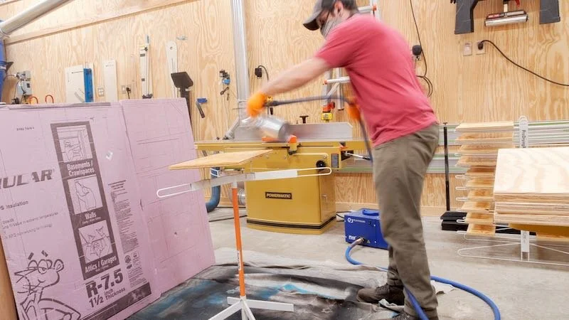 After a little more sanding on the front edges off camera, I could move on to adding a clear coat to the rest of the pieces, and I used TotalBoat’s new Halcyon Clear Matte finish on this project.