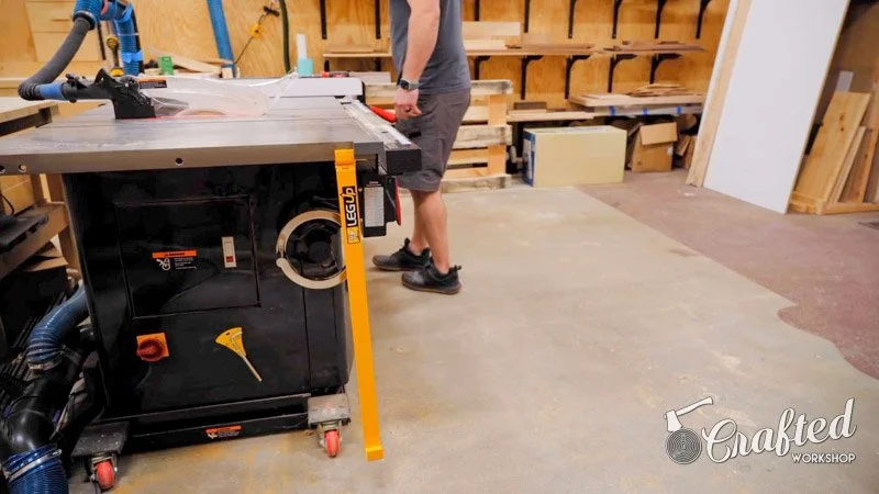 Before getting to ripping, I swapped to a higher tooth count blade on my table saw to minimize tearout and I also installed this extremely useful Leg Up accessory, which is designed to assist in getting a full sheet of plywood safely up onto the table saw when you’re working by yourself.